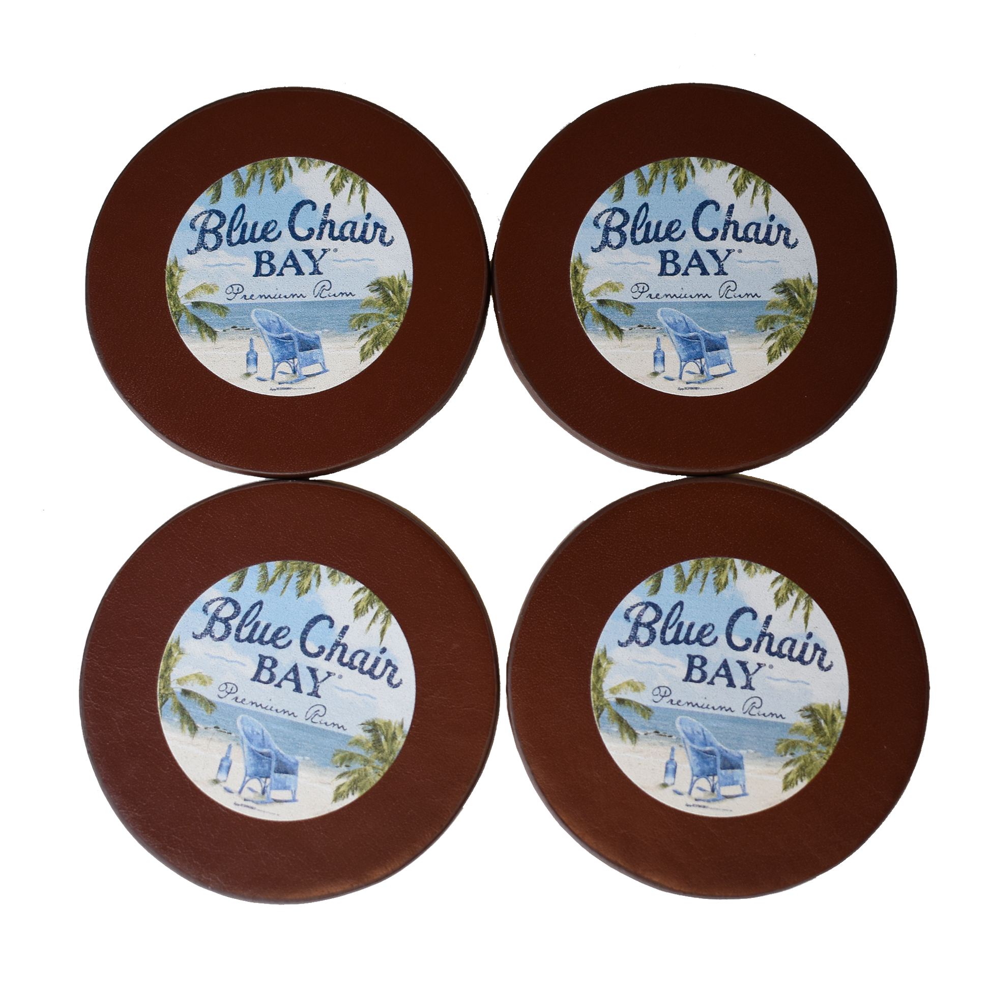 Leather round 4 piece coaster set. With Tuscan Italian cowhide, this bonded leather, round coaster set features a seamless construction with gloss edge coating and a liquid-resistant leather surface with a non-skid felt bottom. This distinctively styled holder with contrast stitching includes four 3 1/2" diameter round coasters.